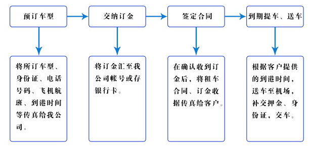在我公司租車很方便,只需5分鐘,就可辦完所有手續(xù)。主要流程如下: